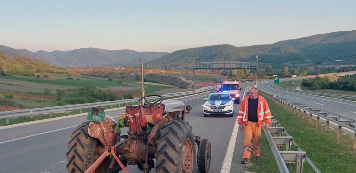 Služba obilaska Puteva Srbije obezbeđuje traktor. Dat je nalog izvođaču da ukloni traktor sa auto-puta.