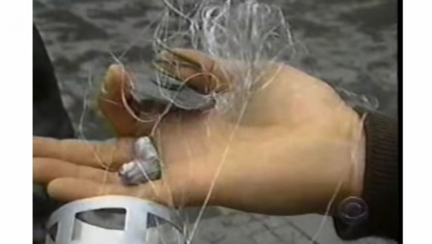Ova bomba sadrži sitne, desetinama puta sitnije od milimetra, niti grafita koja kada padnu na električne vodove izazivaju kratke spojeve i dovode do prekida u strujnom kolu.