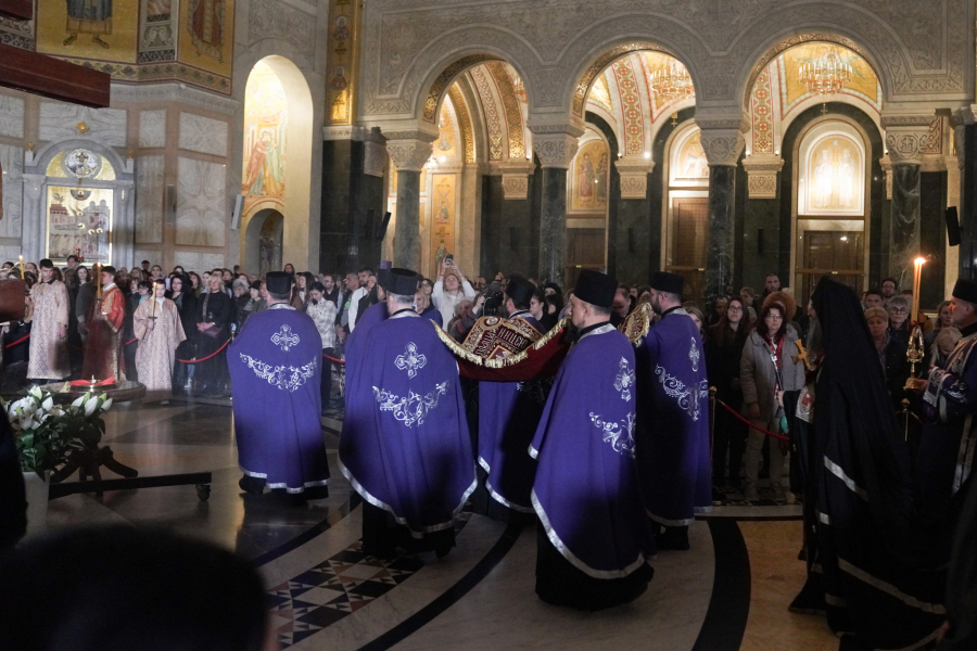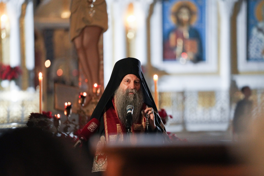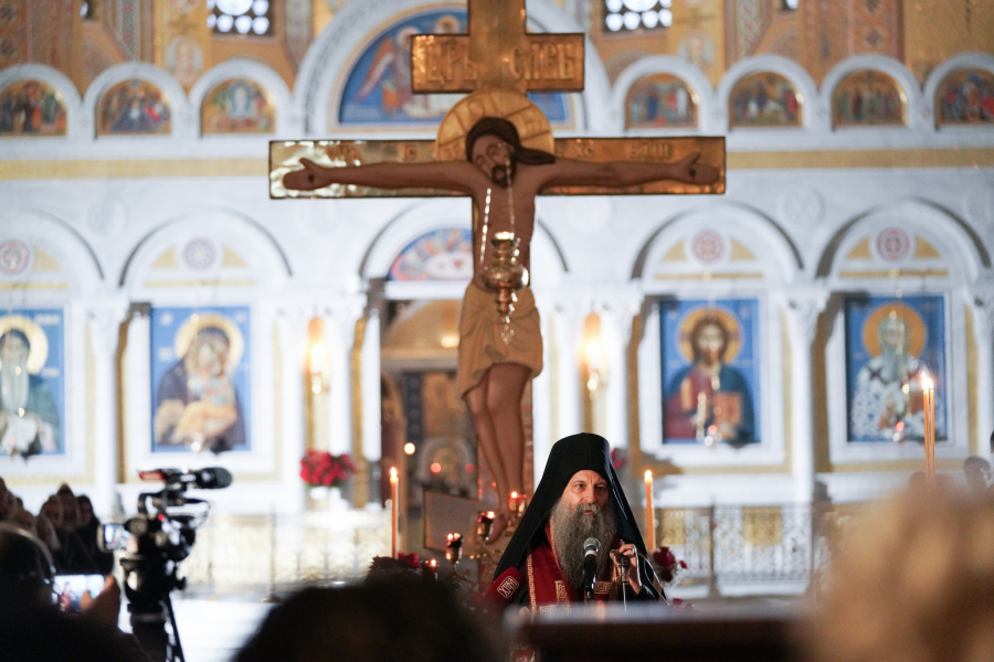Patrijarh Porfirije je u besedi okupljenim vernicima rekao da je Veliki petak dan kada molitveno i duhovno treba da zavirimo u svoju dušu i da, stojeći pred Hristom, vidimo na kojoj smo strani i da razumemo da nije moguće biti Hristov i u isto vreme se dopadati onima koji stvaraju logiku koja je drugačija, a neretko i suprotna Hristu.