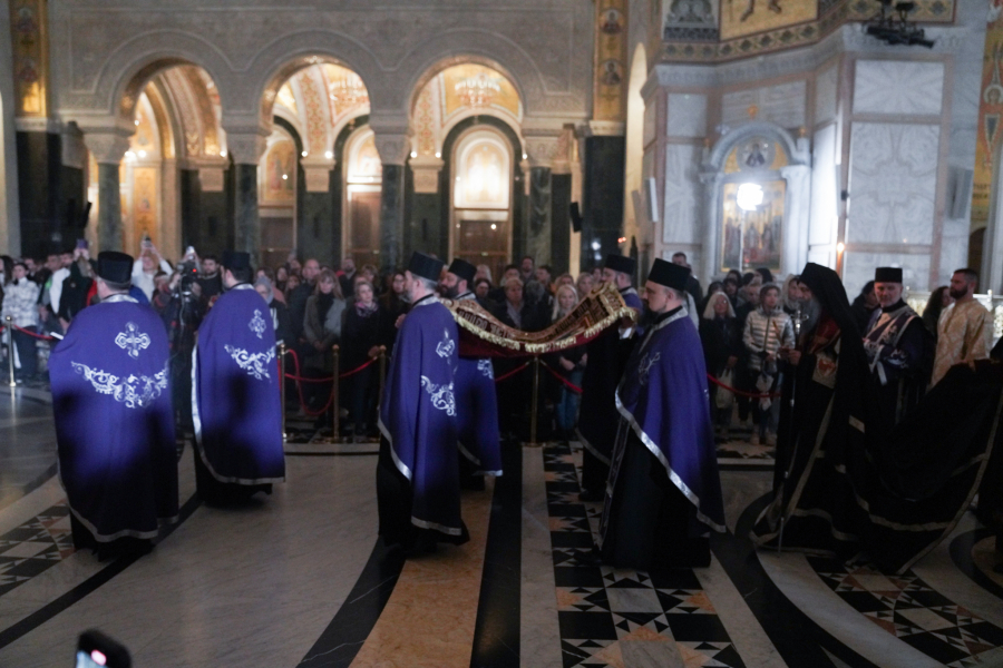 PATRIJARH SLUŽIO VEČERNJE VELIKOG PETKA U HRAMU Vernici celivali Plaštanicu (FOTO)