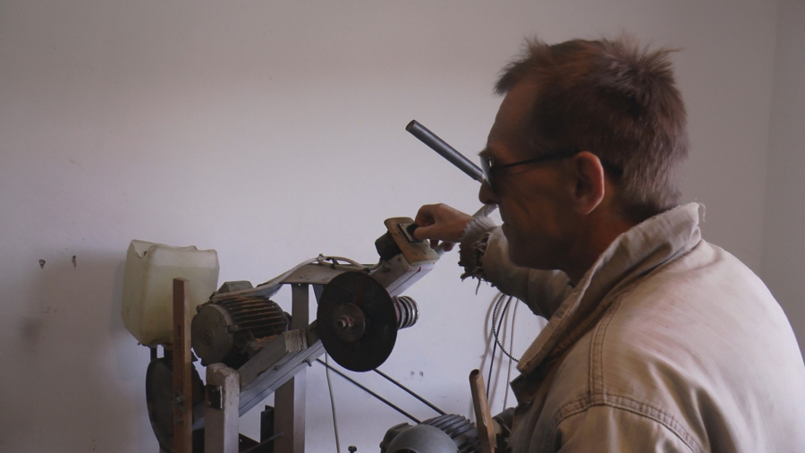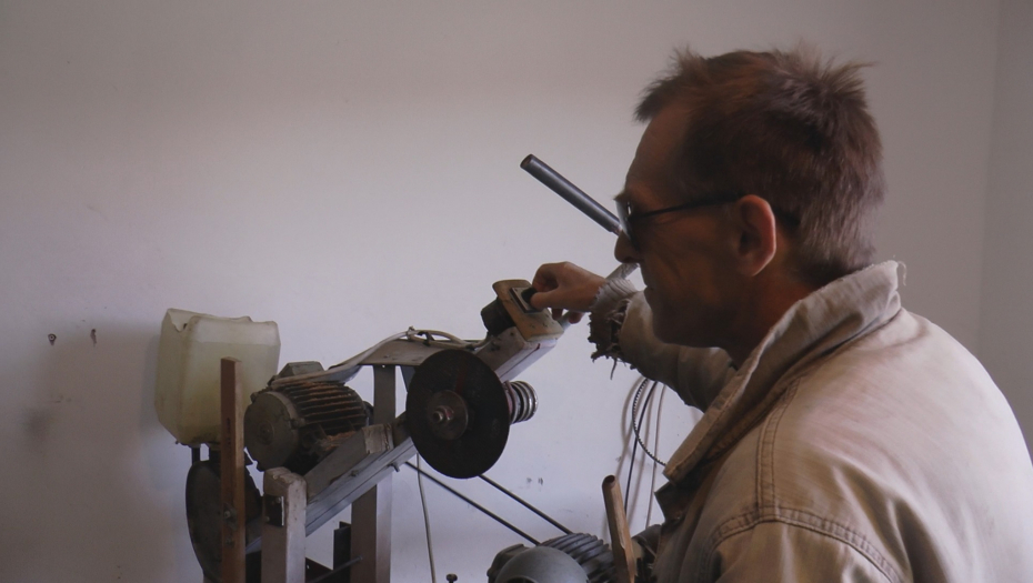 U garaži se nalazi njegova radionica, do koje ide uz pomoć štapa, a kad stigne u svoj kutak, tu je svoj na svome. Ništa mu nije potrebno. Sve teške poslove obavlja bez greške i to do detalja, vešto barata oštrim strugom, a za deceniju ipo, njegove vredne ruke napravile su mnogo toga.