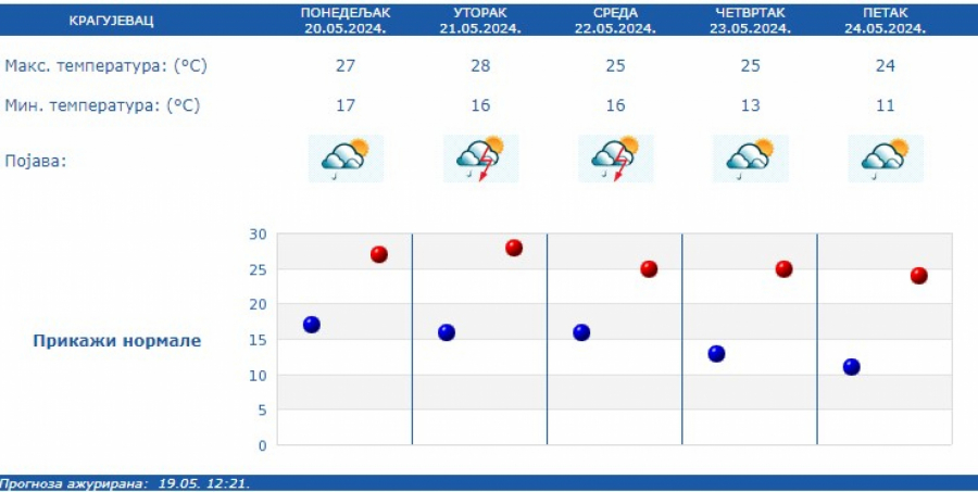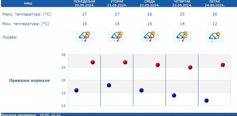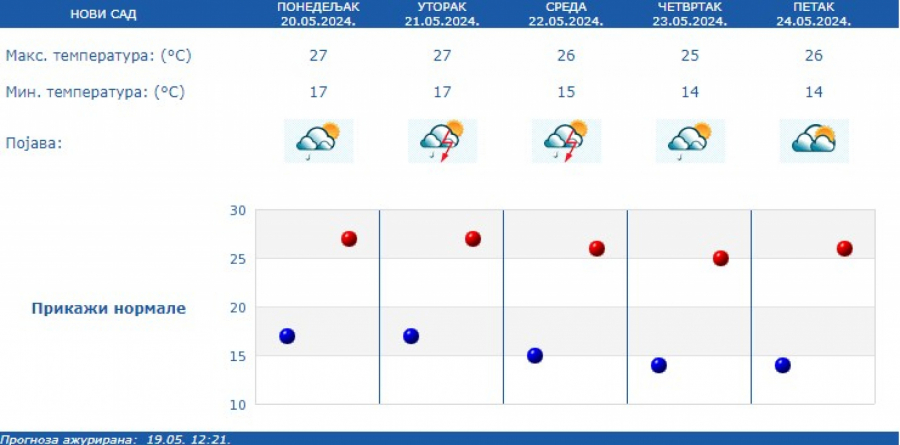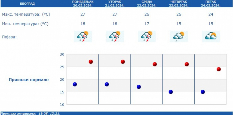 U Srbiji u narednih sedam dana promenljivo, toplo i nestabilno s čestom pojavom kiše, pljuskova i grmljavina.