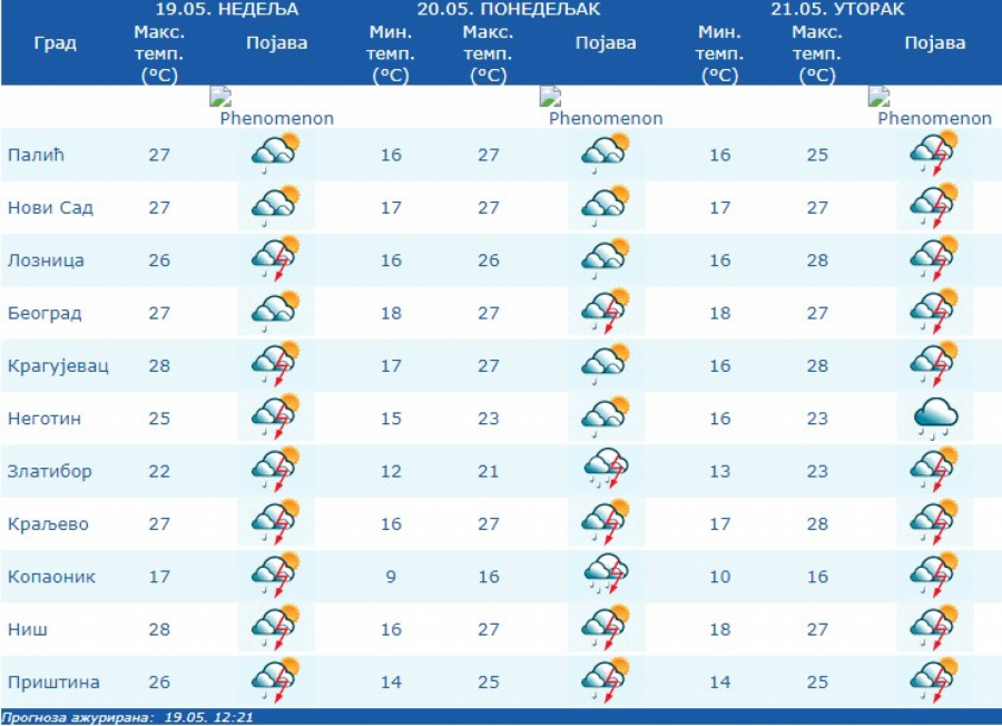 U Beogradu u toku noći pretežno oblačno i nestabilno sa kišom, pljuskovima i grmljavinom, koji lokalno mogu biti izraženiji uz veću količinu padavina. Ujutro prestanak kiše, a u toku dana promenljivo oblačno, uz manju mogućnost za padavine.