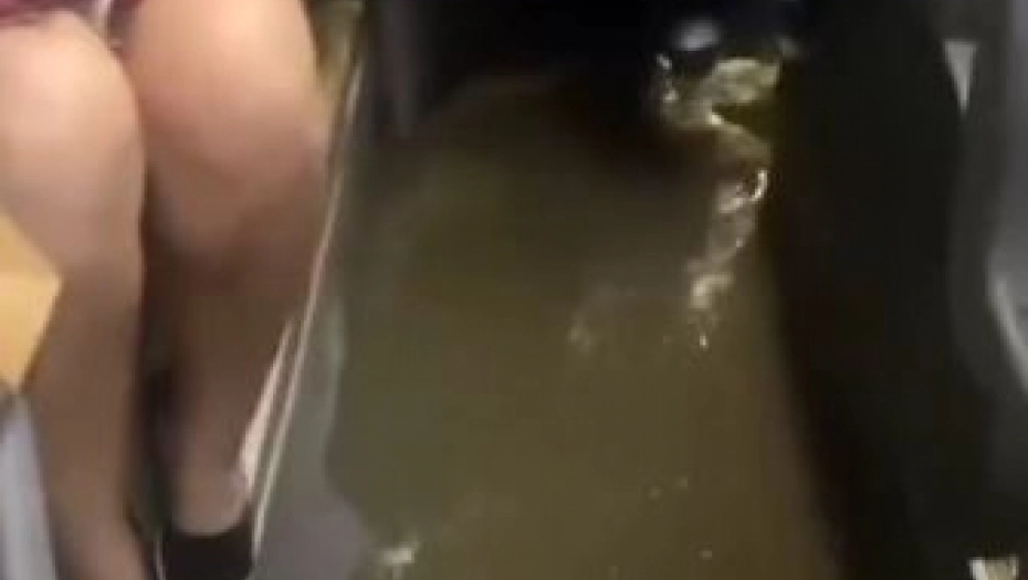 Voda je ušla u autobus na liniji 20. Vidi se kako putnici stoje u vodi koja im je do članaka, dok i oni koji sede sve vreme paze da se ne pokvase.