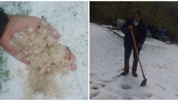 Fotografija napadalog grada u mestu Erčege kod Ivanjice ostavila je korisnike u čudu. Naime, čovek sa lopatom kupi grad, a prizor izgleda kao da je pao sneg.