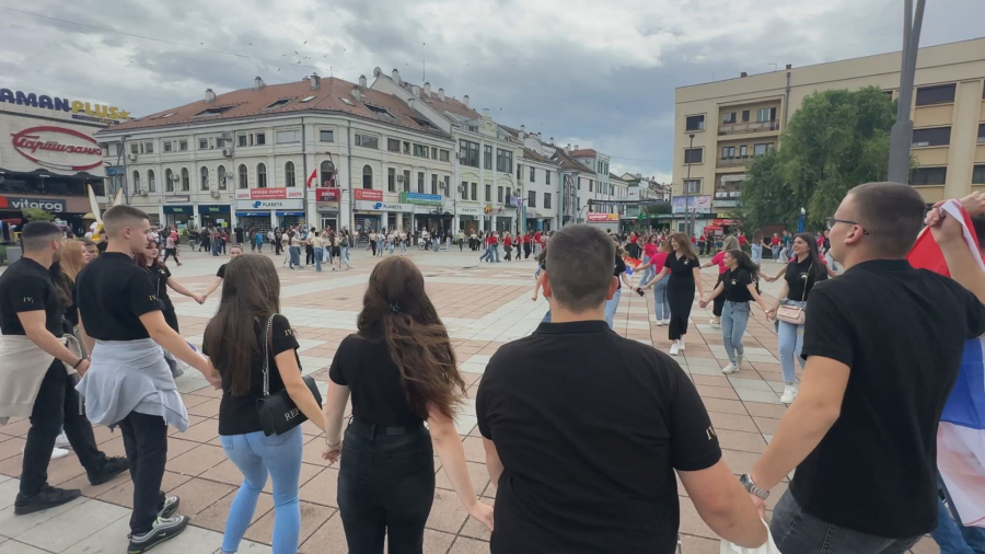 Veseli i mladi maturanti svih čačanskih srednjih škola su i dalje i te kako dobrog raspoloženja, pa su kroz centar grada na novoj pešačkoj zoni opleli veliko dobro poznato srpsko užičko kolo.