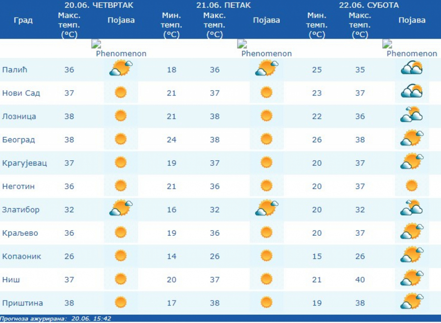 Jutarnja temperatura od 16, najviša do 40 stepeni.
