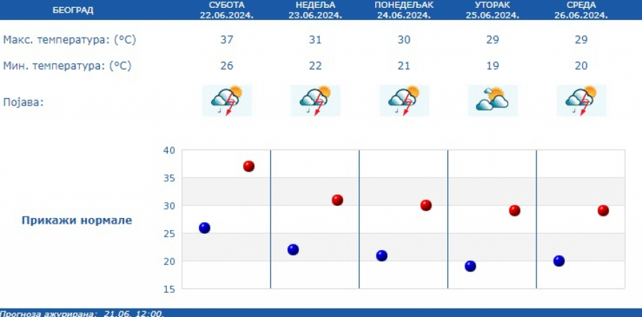 Najviša dnevna temperatura biće oko 37 stepeni.