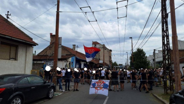 Navijači Crvene zvezde već se nalaze ispred Dorćol placa u Dobračinoj ulici.