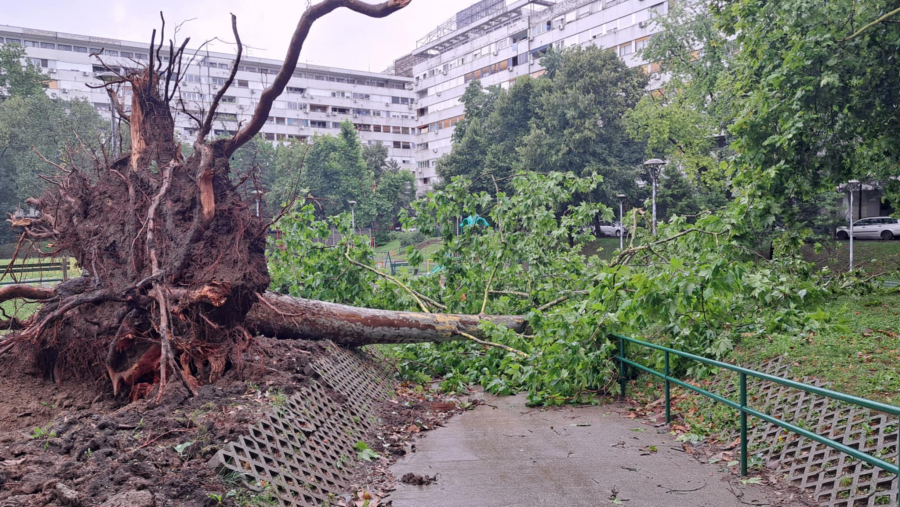 Naime, u bloku 38 je katastrofalno stanje. Orkanski vetar je u toku noći iščupao skoro 20 stabala iz korena. Drveće je padalo na parkirane automobile, čak je jedno palo u ugostiteljski objekat.