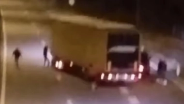 U trenutku snimanja, vozilo je obilazilo kamion, dok su ljudi pokušavali da se popnu na njega, iako se kamion kretao malom brzinom.