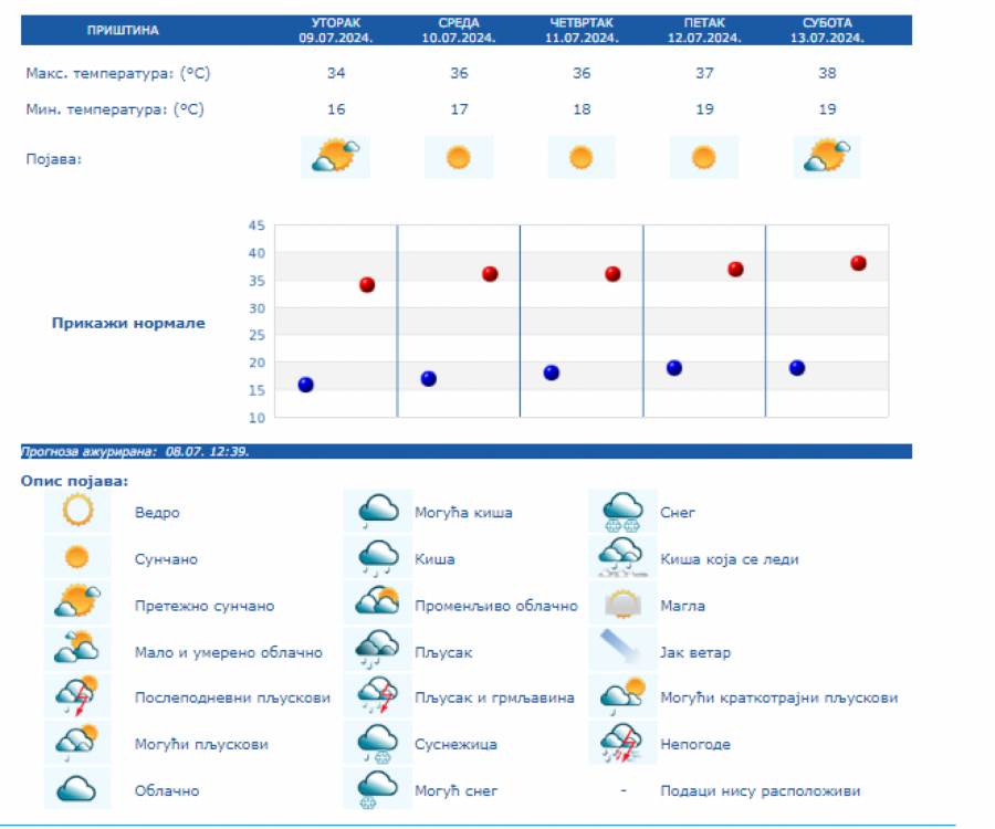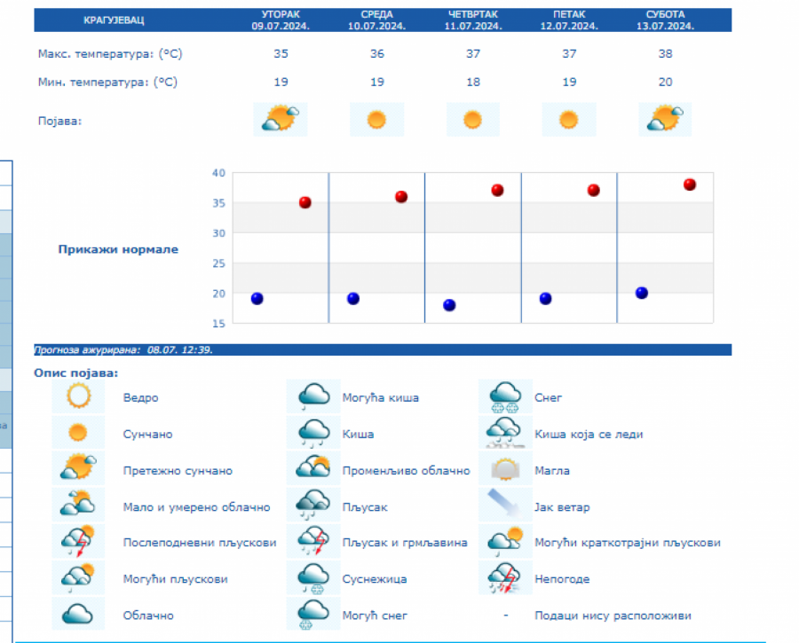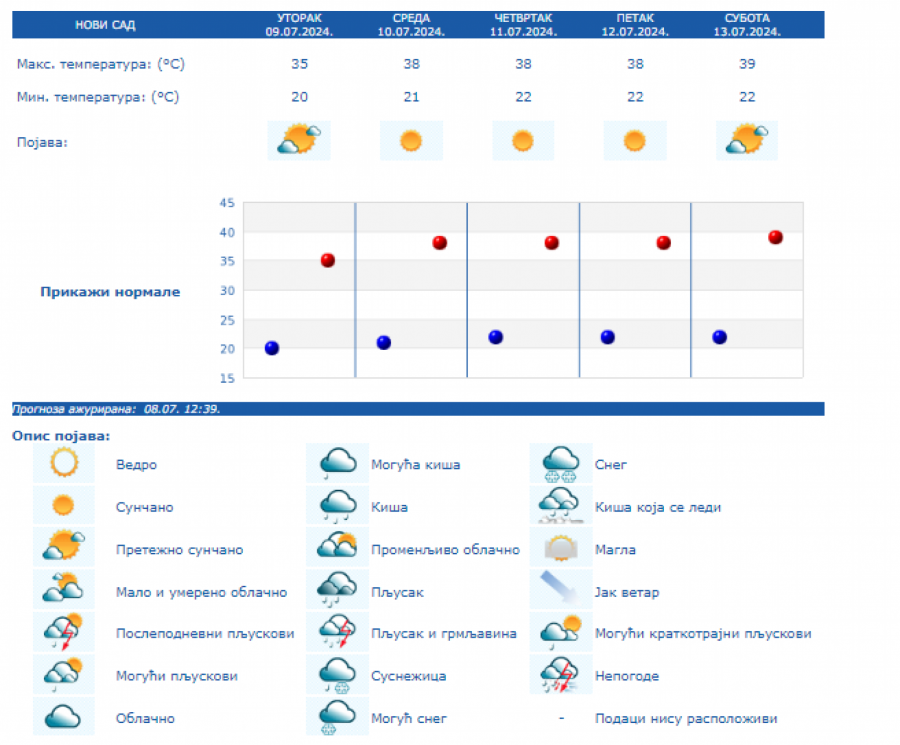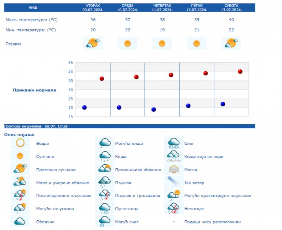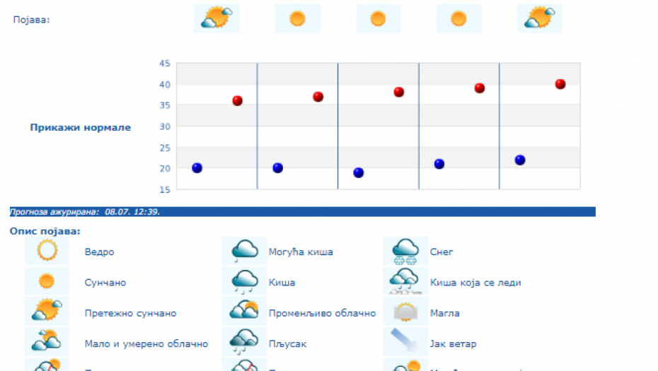 RHMZ je upozorio da se na području Srbije od srede, 10 jula, pa do kraja nedelje, očekuje izražen toplotni talas sa temperaturama od 35 do 40 stepeni i uz tropske noći u urbanim sredinama.