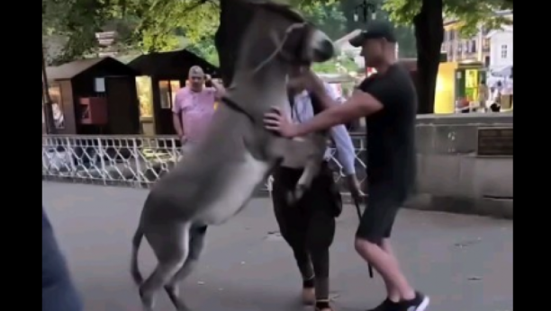 IMATE LI DUŠU, ZNATE LI ZA BOGA? Ljudi ŠTAPOM udaraju nemoćno magare pred turistima, uznemirujući snimak iz Vrnjačke banje ZGROZIO Srbe! (VIDEO)