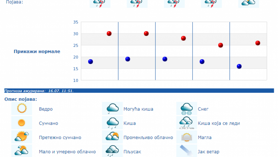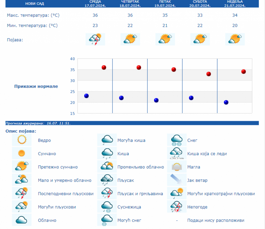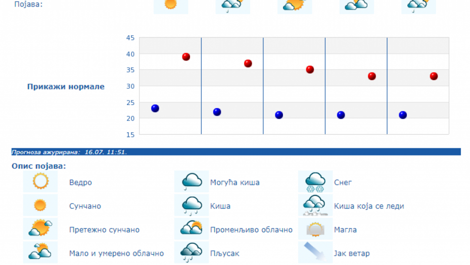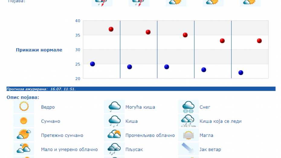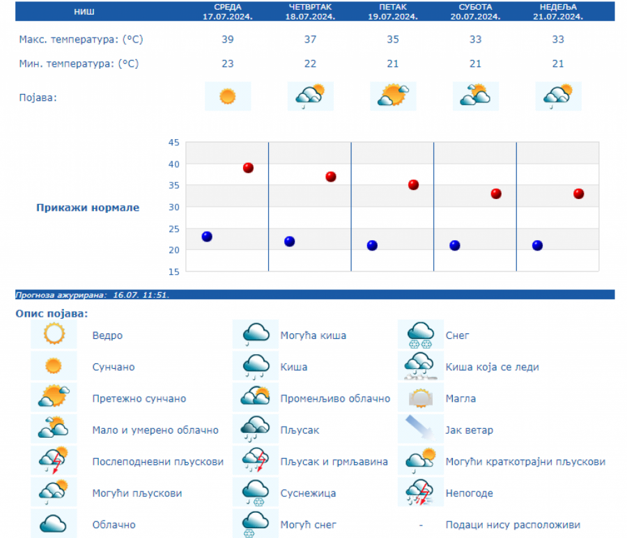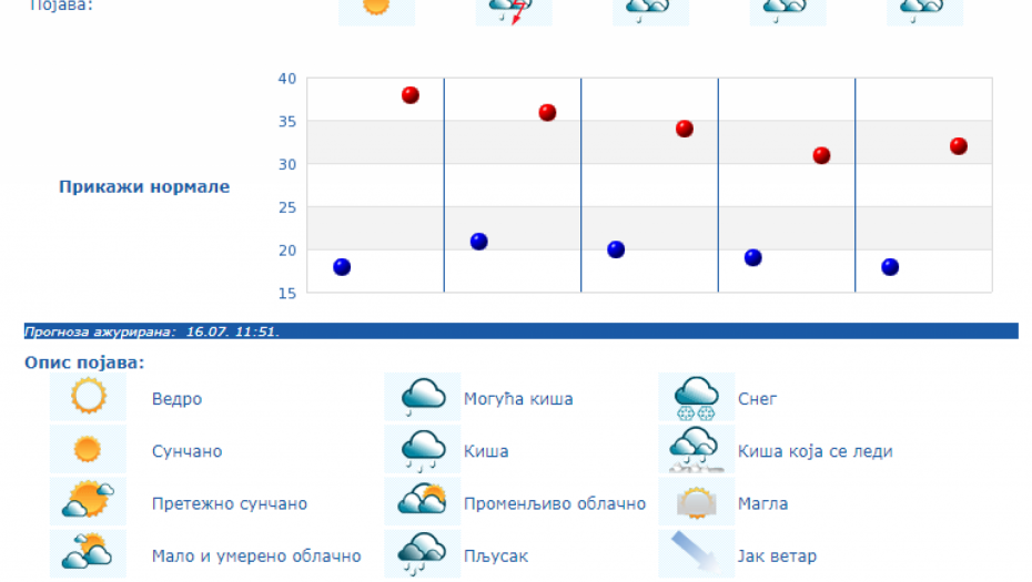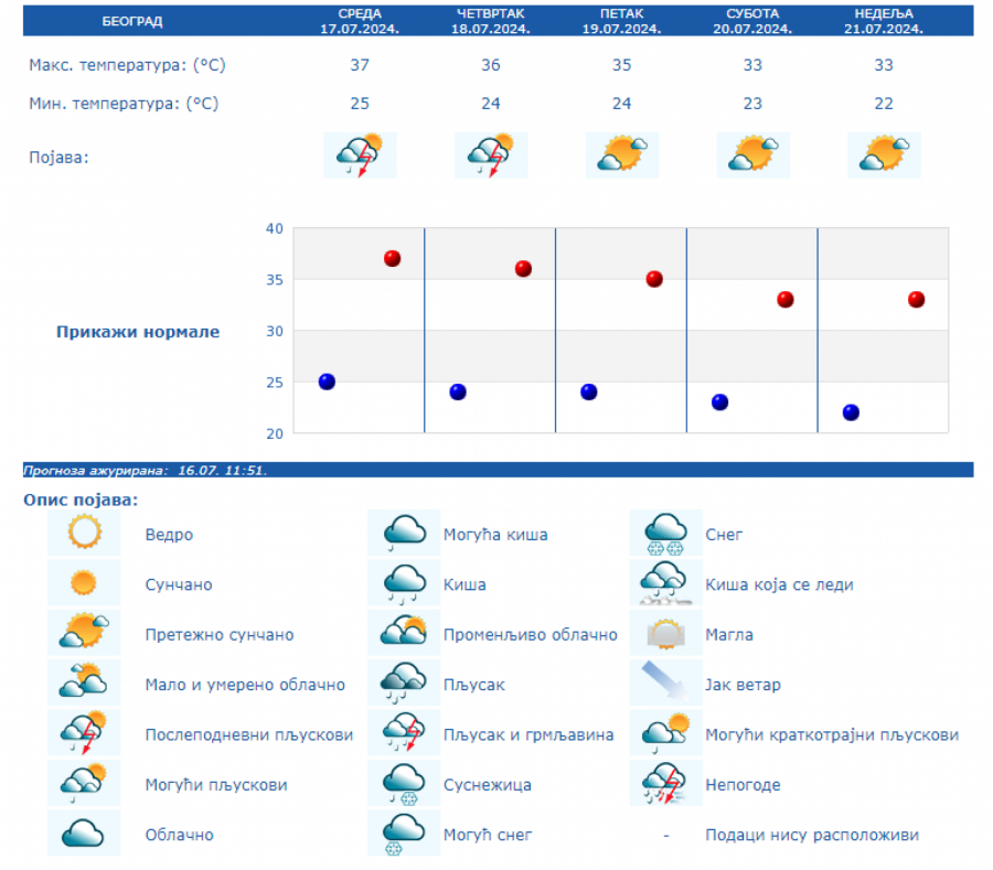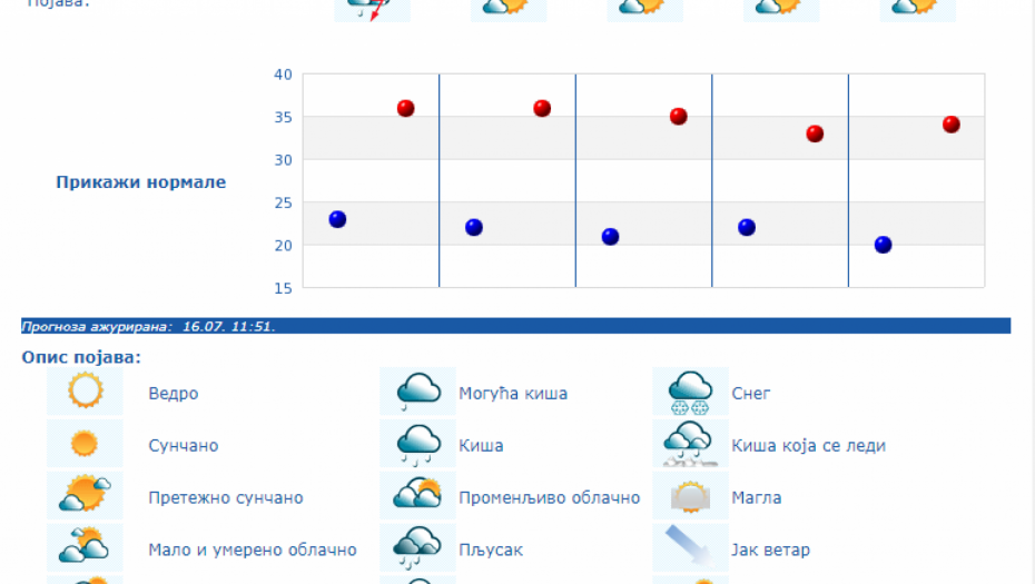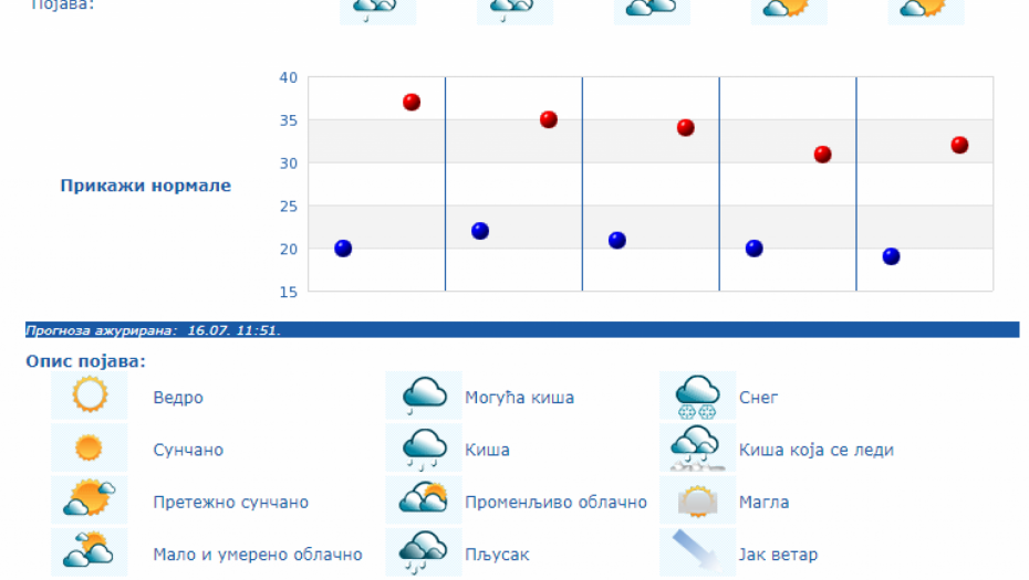 I u svom upozorenju RHMZ juče je naveo da se danas očekuje od 35 do 39 °S.
