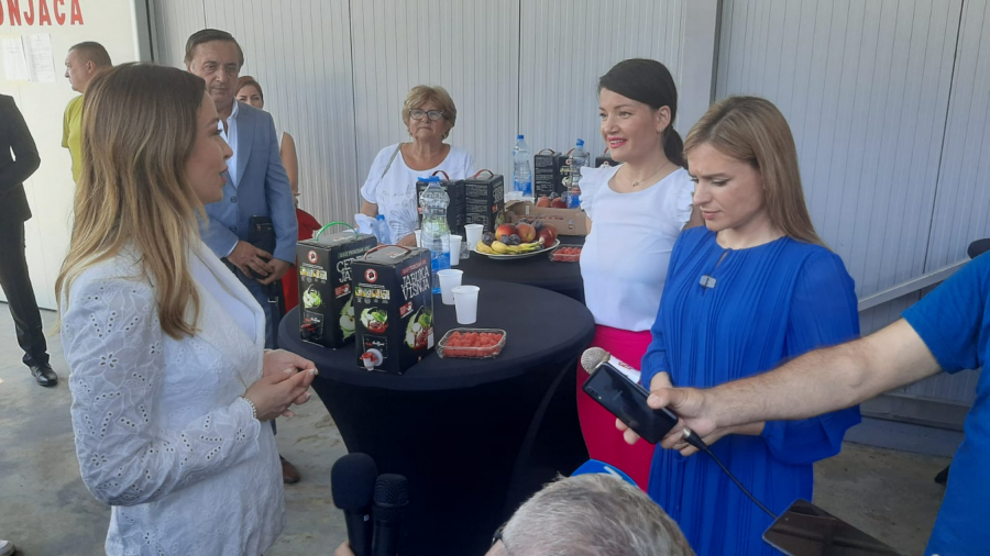 - Bila je čast upoznati jednu sjajnu damu, vrlo sposobnu i posvećenu svom poslu i svojoj porodici. Irena Jovanović je jedna od najuspešnijih preduzetnica u Topoli. Vlasnica je porodične firme koja sada zapošljava 10 ljudi, ali imaju u planu da pokrenu pogon za preradu voća i pravljenje sokova, što bi značilo i otvaranje novih radnih mesta. Pozvala sam je da se prijavi na neki od naših novih konkursa podrške maloj privredi, i tako uz pomoć svoje države realizuje novi biznis plan - rekla je Mesarović.