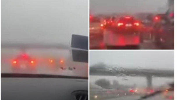 HAOS NA AUTO-PUTU MILOŠ VELIKI! Od kiše se ne vidi prst pred okom, svi stoje sa upaljena četiri migavca (VIDEO)