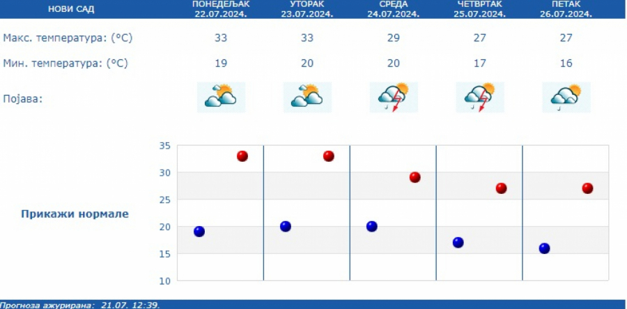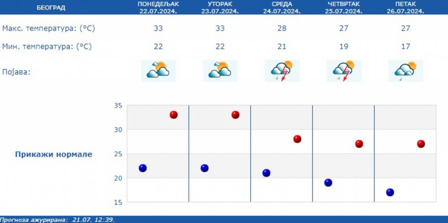 Najniža temperatura oko 22, najviša oko 33 stepena Celzijusa.