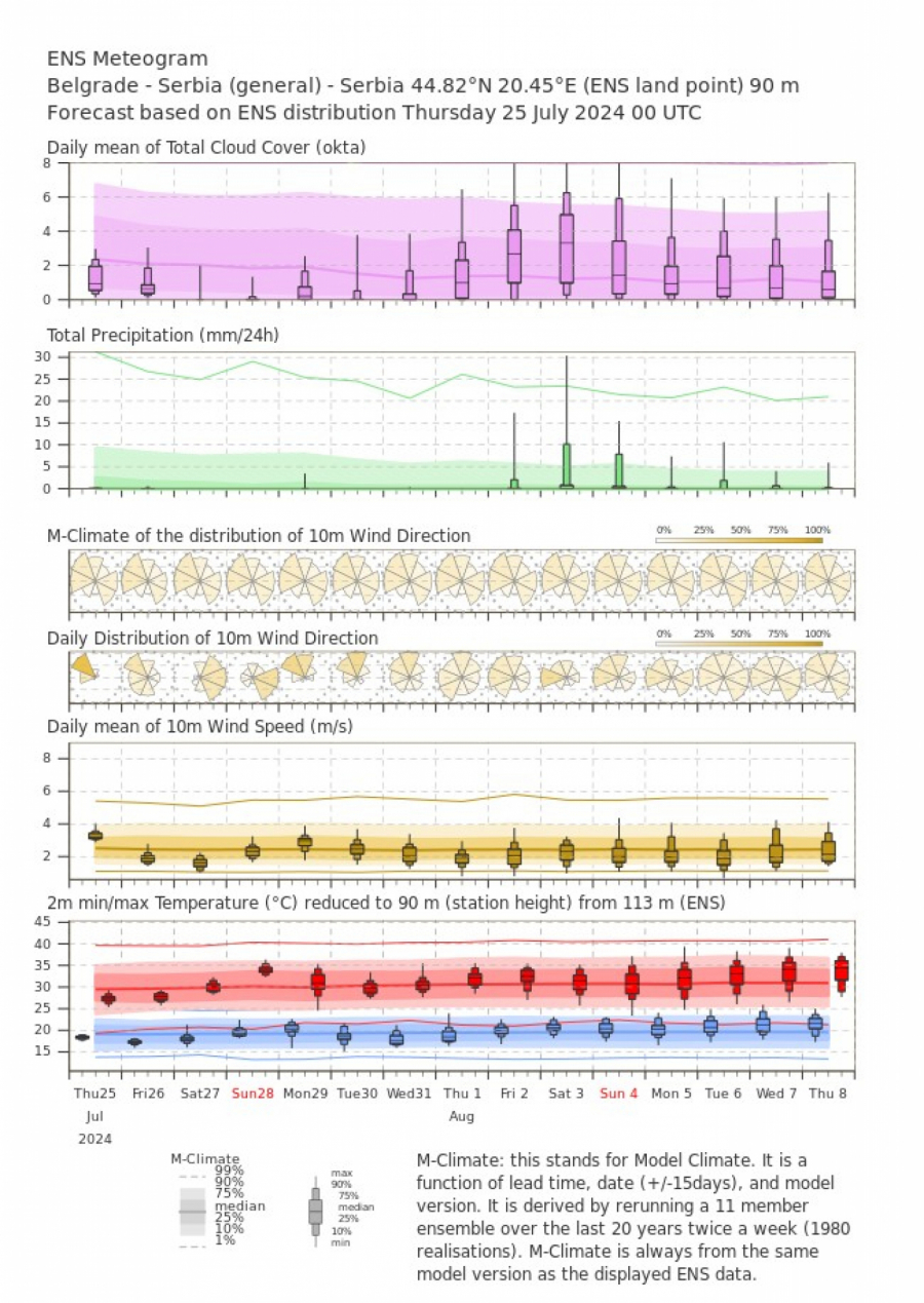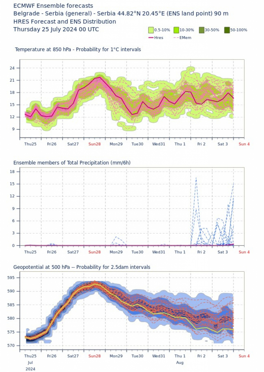 Početkom avgusta ima uslova za kratkotrajne pljuskove kiše sa grmljavinom a od 5. avgusta počinje novi toplotni talas jača afrički anticiklon koji će zahvatiti veći deo Evrope.