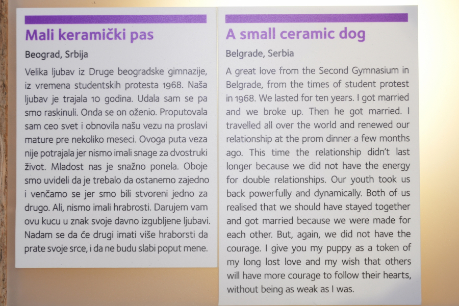 - Do sada smo imali priliku da putujuće izložbe Muzeja vidimo u preko 30 zemalja, a organizovano je preko 65 izložbi. Ideja je da briše kulturološke granice i geografske položaje, i pokaže da je ljubav univerzalna, kao i tuga i gubitak, i da se sa ovim pričama svako može poistovetiti. Sve ove priče otvaraju vrata emocijama, posetioci pronalaze u njima utehu i ne oslanjaju se na to odakle priče dolaze, već na samu suštinu - kaže ona.