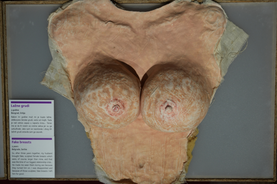 Jedan od predmeta u Muzeju koji je privukao dosta pažnje jeste venčanica koju buduća mlada nikad nije stigla da obuče, jer je njen verenik raskinuo pre svadbe, pa je pre doniranja Muzeju devojka koristila venčanicu kao prekrivač. Tu su i dve haljine, cipele i tašna koje je donirala žena nakon duge i teške bolesti svoje majke. Jedne papuče pričaju o odnosu između devojke i njenog 30 godina starijeg ljubavnika, koje mu je poklonila a nije želeo da ih nosi.