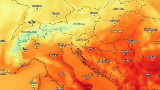 Maksimalna temperatura biće od 34 do 38°C, u Beogradu do 37°C.