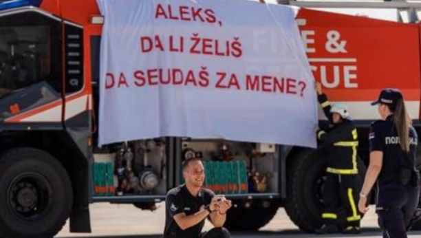 Petar, vatrogasac na niškom aerodromu, došao je na ideju da svoju devojjku Aleksandru zaprosi na nesvakidašnji način, a ovaj romantičan čin, objavio je i Aerodrom Konstantin Veliki na svom zvaničnom Fejsbuku.