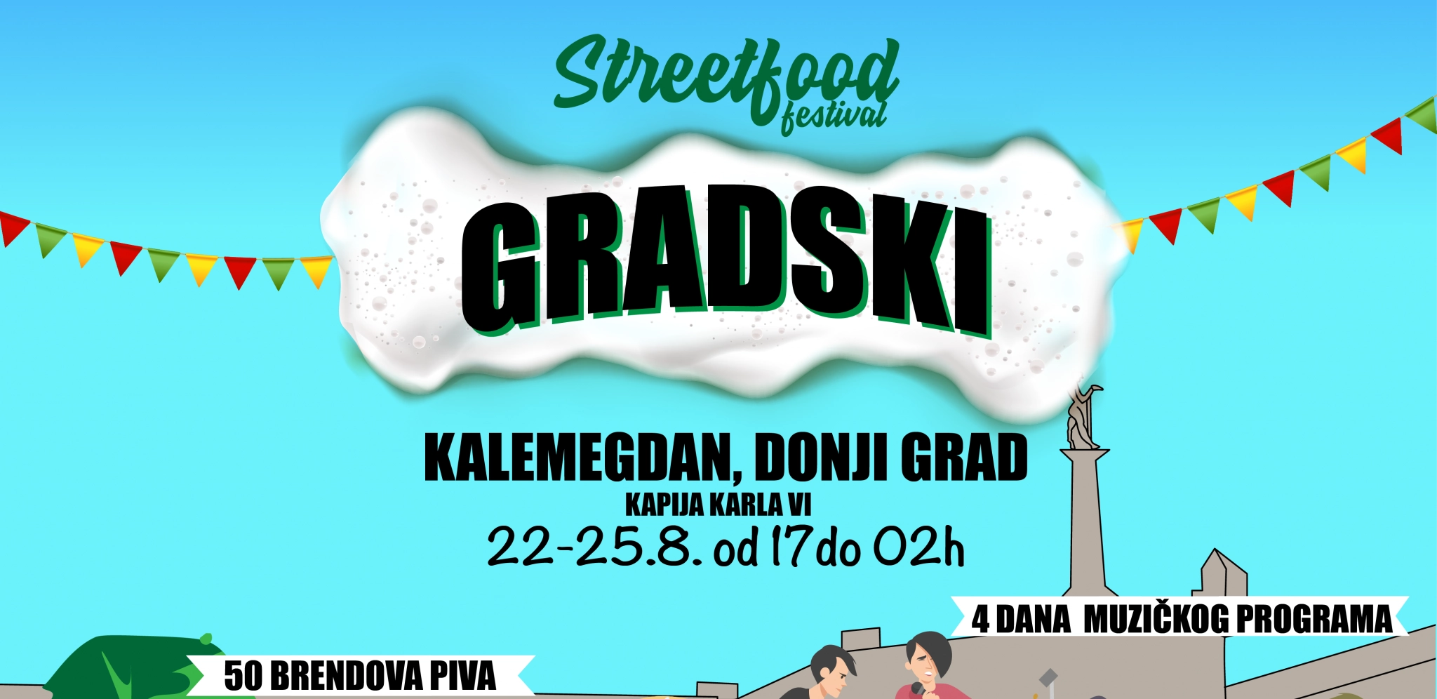 U jednom od najlepših gradskih parkova, podno zidina monumentalne Beogradske tvrđave, održaće se premijerno izdanje “Street Food Festivala” pod nadimkom “Gradski” koji će obeležiti beogradsko leto i u velikom stilu zatvoriti letnju festivalsku sezonu! Festival počinje 22. avgusta od 17 h na Donjem gradu Kalemegdana i trajaće sve do nedelje u 02 h, a glavni ulaz na festival nalaziće se kod Kapije Karla VI. Ulaz na festivalski prostor je naravno besplatan za sve posetioce, a organizatori najavljuju predstavljanje 20 sjajnih izlagača beogradske street food scene – predstavnike različitih svetskih kuhinja, zonu sa preko 50 vrsta piva i ozbiljno dobar provod kakav Donji grad opravdano obećava!