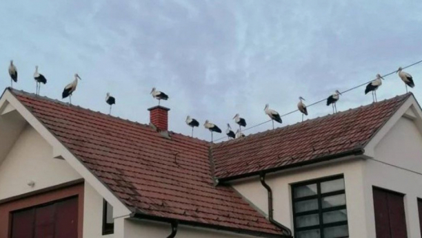 O tome svedoči trenutak u kojem se čitavo jato roda, čak njih 15, šepurilo na krovu njegove kuće, odmarajući na dimnjaku i po crepovima. Neobičan prizor ovekovečen je i fotografijom koja je objavljena na Instagram stranici "192.rs".
