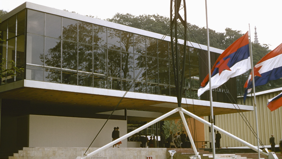 Na prvom velikom posleratnom EXPO 1958. godine u Briselu socijalistička Jugoslavija ostvaruje zapažen nastup sa fenomenalnim paviljonom koji je projektovao zagrebački arhitekta Vjenceslav Rihter. Paviljon projektovan u skladu sa najmodernijim tendencijama tadašnje svetske arhitekture izazvao je opšte oduševljenje posetilaca. Sazdan od gvožđa i stakla objekat je predstavljao modernizam jugoslovenskih ideja. Snažna sajla držala je šest čeličnih lukova koji su predstavljali šest jugoslovenskih republika. Naša zemlja dobila je Zlatnu medalju EXPO za paviljon, a objekat je po završetku izložbe prodala Belgiji i on i danas postoji i koristi se kao srednja škola u belgijskoj opštini Vevelgem u Zapadnoj Flandriji.