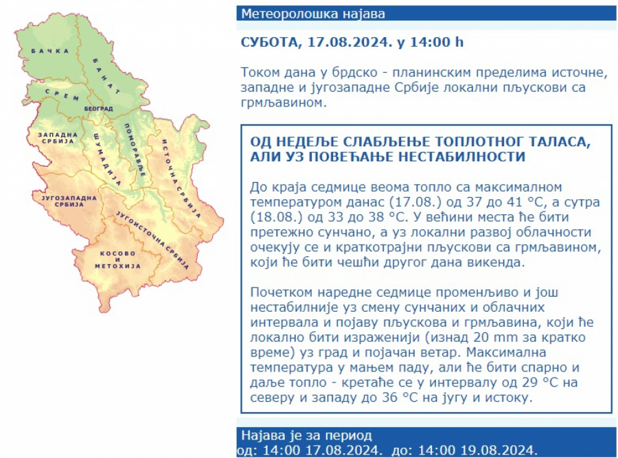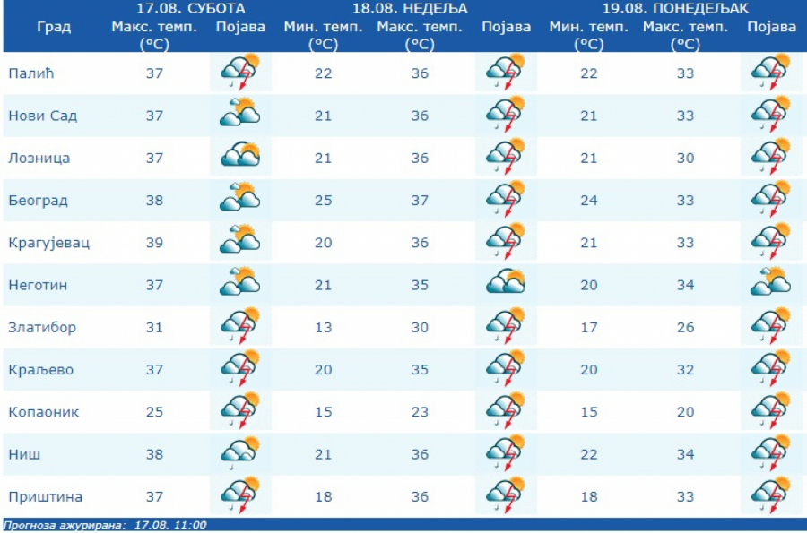 Ponegde se očekuju i grmljavinske oluje sa gradom i nepogodama.
