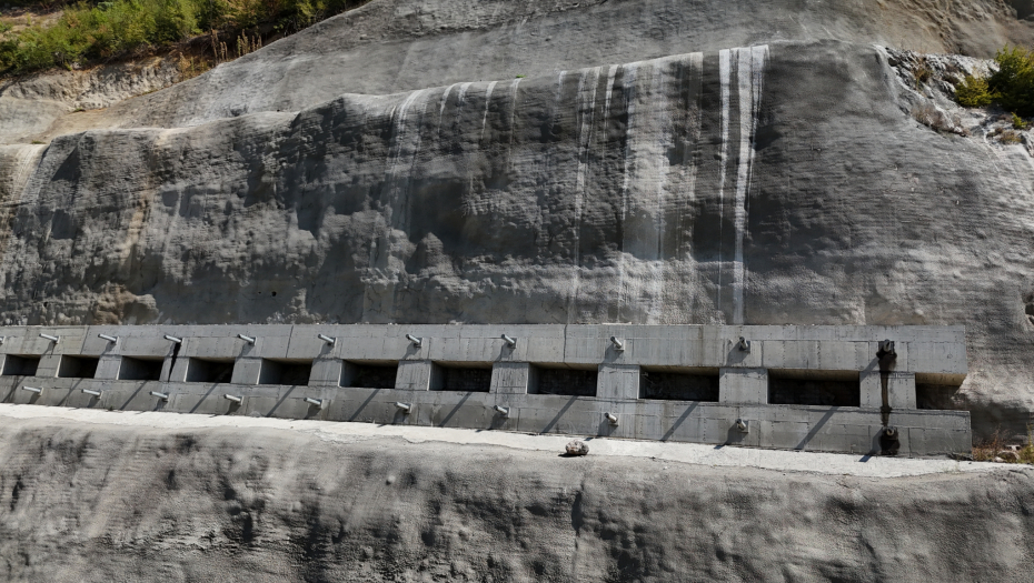 - Imali smo dva velika klizišta koja su se pojavila i koja smo sanirali dve ipo, skoro tri godine. Zahtevno i nezgodno, ugradili smo 107 šipova dužine od 15 do 32 metara , prečnika metar ipo, sve to da bi mogli da zaustavimo brdo i osiguramo izlaz optočnog tunela - kaže Nenad Jokić, diplomirani građevinski inženjer i odgovorni izvodjač radova.
