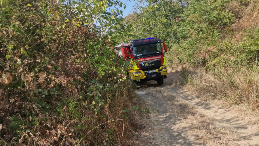 Vatrogasne ekipe se nalaze na terenu i aktivno rade na gašenju požara.