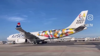 Novi avion u floti kompanije Air Serbia nosiće upravo livreju EXPO 2027, predstojeće Specijalizovane izložbe u Beogradu. Dizajn novog aviona Airbus 330-200 odražava vizuelni identitet EXPO 2027 i razigrane forme logoa, ali predstavlja i jasnu poveznicu sa temom predstojeće izložbe ”Igraj za čovečanstvo: sport i muzika za sve”. Ovaj avion pridružuje se floti širokotrupnih aviona među kojima su oni koji nose likove čuvenih naučnika Nikole Tesle i Mihajla Pupina.