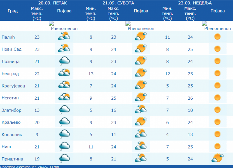 Po kotlinama i visoravnima jugozapadne i južne Srbije mestimično magla ili niska oblačnost. U toku dana pretežno sunčano i malo toplije.