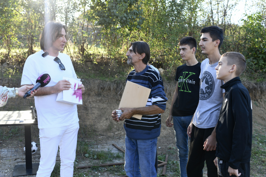 “Kampanju povodom Pinkovog rođendana, koja se sastoji od 30 dana – 30 događaja, započeli smo sa humanitarnim akcijama u Zvečanskoj, pa kod samohrane majke Nade sa petoro dece. Danas, za 22. događaj izabrali smo samohranog oca Milorada sa petoro dece. Za Milorada smo pripremili donaciju od million dinara. Milorad je veliki lav, koji uspeva svoju decu da izvede na pravi put. On crta ikone i na taj način porodici obezbeđuje sredstva za život. Majka ih je pre nekoliko godina napustila, on je izgubio posao i od tada radi sa ikonama. Interesantna stvar je kada dobije novac od ikona, taj novac često daje drugima za koje smatra da im je novac potrebniji. Sve u svemu – jedna dirljiva priča. Velika je čast dati Miloradu donaciju, jer će je upotrebiti za kupovinu mašina pomoću kojih će lakše da radi i bolje zaradi. Pored ovog, imaćemo još dva humanitarna događaja. Humanitarni bal za decu bez roditeljskog staranja 24. septembra i useljenje u kuću majke Nade sa petoro dece 26. septembra. Veoma smo ponosni na naše humanitarne akcije.” – rekao je Mitrović.
