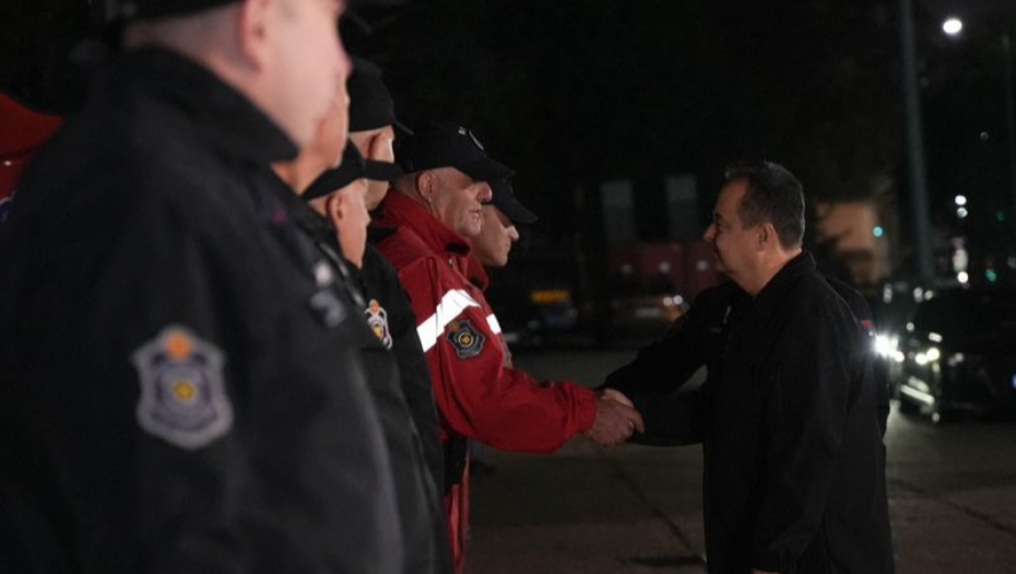 - Pet sati je i devet minuta, kao što smo najavili, odavde ispred sedišta Sektora za vanredne situacije za grad Beograd Ministarstva unutrašnjih poslova kreću naši Specijalistički timovi za spasavanje za Bosnu i Hercegovinu. Kao što smo izjavili, po nalogu predsednika Srbije Aleksandra Vučića koji je javno iskazao spremnost Srbije da pomogne Bosni i Hercegovini u ovom teškom trenutku kada je BiH zadesila prirodna katastrofa, posle ogromnih poplava i klizišta, gde je bilo i ljudskih žrtava i velike materijalne štete, a takođe i na osnovu pisma koje je premijer Miloš Vučević uputio organima Bosne i Hercegovine, gde je još jednom iskazao spremnost Srbije za pomoć - rekao je ministar Dačić.