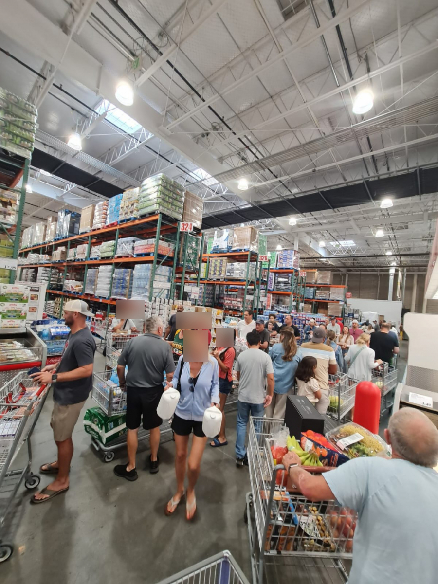 - Istog dana došlo je do nestašice benzina, samo u našem okrugu nestalo je goriva na 34 benzinske stanice, mada ga opet ima koliko toliko. U ponedeljak su bile nestvarne gužve i redovi u prodavnicama za vodu, toalet papir, agregate... neke radnje već u ponedeljak su zatvorene, neke juče. Sada je sve zatvoreno, putevi prazni, osim ovih na severu što su zakrčeni od gužve, aerodromi zatvoreni, baš opsadna situacija doslovce. Područje udara, obavezne i preporučene evakuacione zone, obuhvata oko šest miliona stanovnika, dodaje Stefan