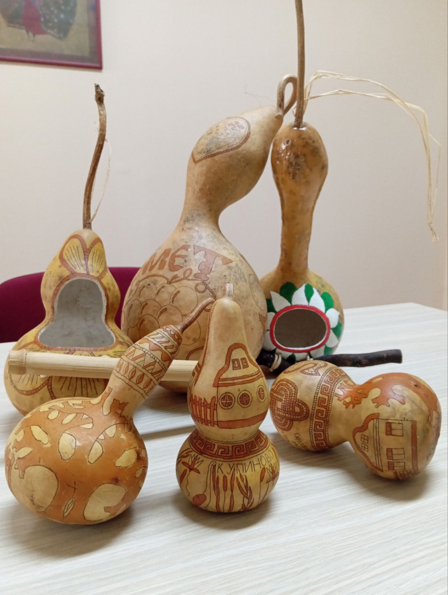 „Inspiracija su vojvođanski pejzaži, događaji, priroda. Ocrtana tikva se stavi pod toplotu sveće ili petrolejke da bi se dobila ta topla, smeđa boja. Dobije se ukrasni predmet, koji kada se pokloni predstavlja izraz velikog poštovanja. Takve tikve se čuvaju i u Etnografskom muzeju, a jedna je u Muzeju 25. maj, među Titovim poklonima“, rekla nam je Ana Antonin koja se već decenijama bavi ovom metodom takozvanog podsmeđivanja tikvi i koja je upravo na Miholjskim susretima održala radionicu za veliki broj zainteresovanih.