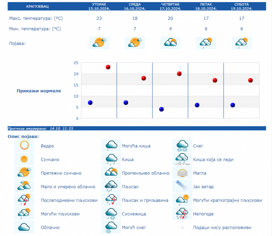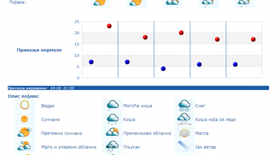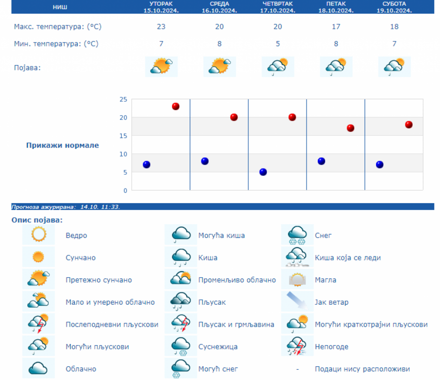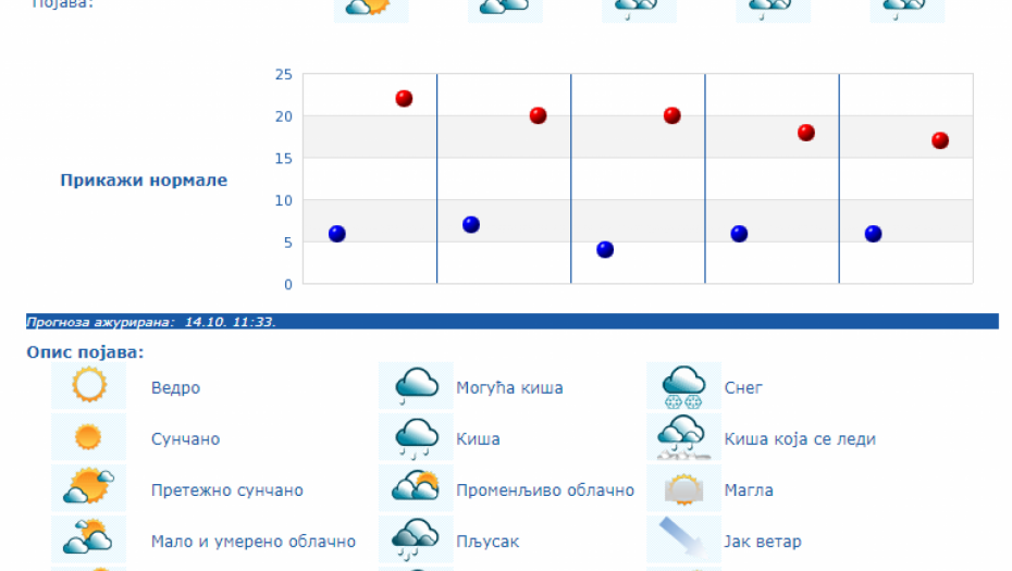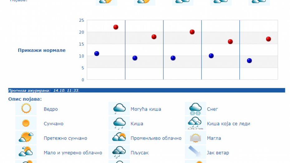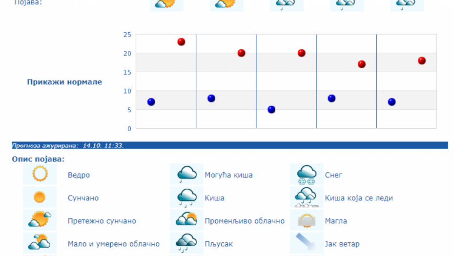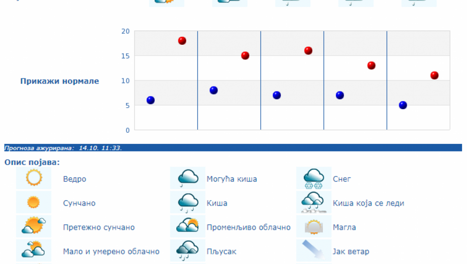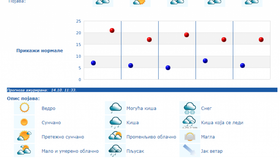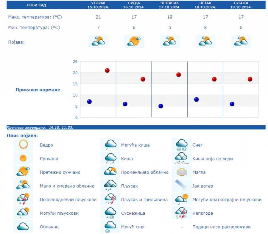 U toku prepodneva duvaće slab vetar promenljivog smera, posle podne i umeren, na severu Vojvodine kratkotrajno jak severozapadni, dok će se temperature kretati od četiri do 24 stepena.