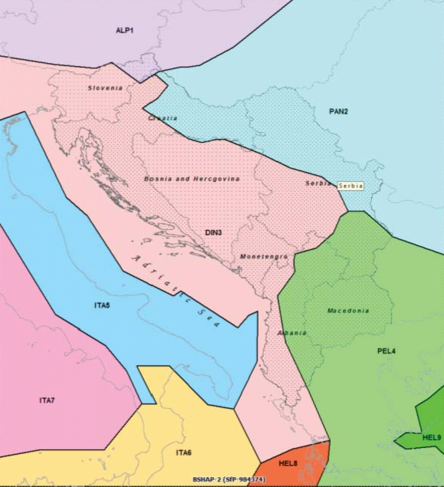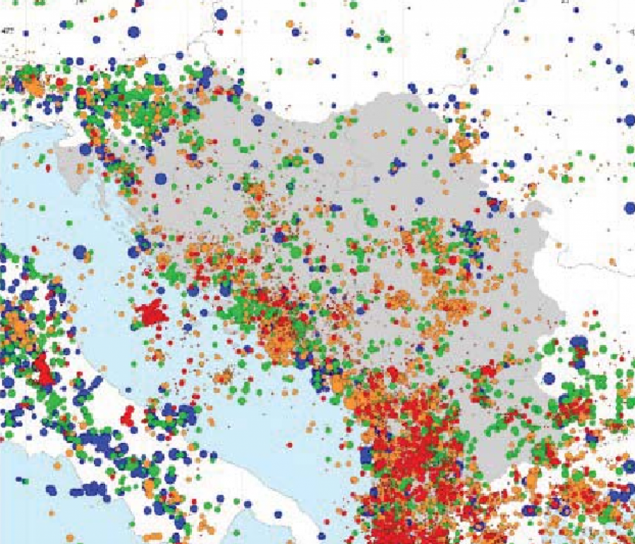 Mapa centralnog Balkana i udara jačih zemljotresa