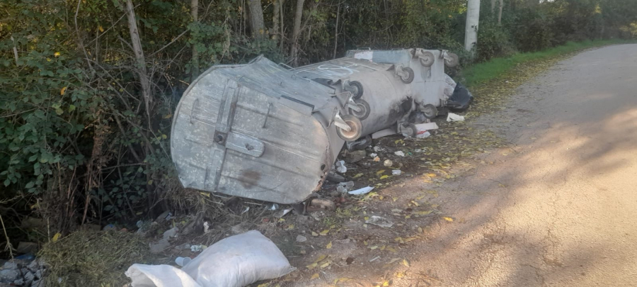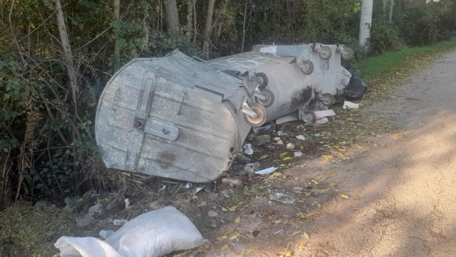 Prevranjem kontejnera smeće je na groblju svuda razbacano, a usled razvaljivanja česme došlo je do oštećenja cevi i voda sada nekontrolisano otiče.