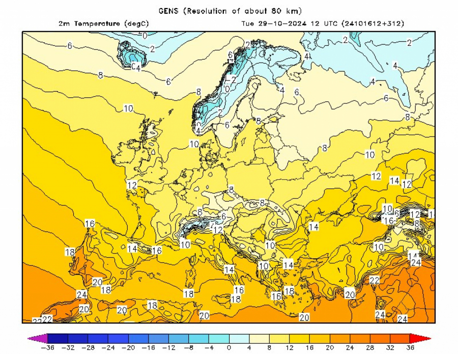 Od ponedeljka spajanje azorskog i sibirskog anticiklona, mnogo manje vetra i manji porast temperatura, gde ne bude magle maksimumi ponovo oko 20C.