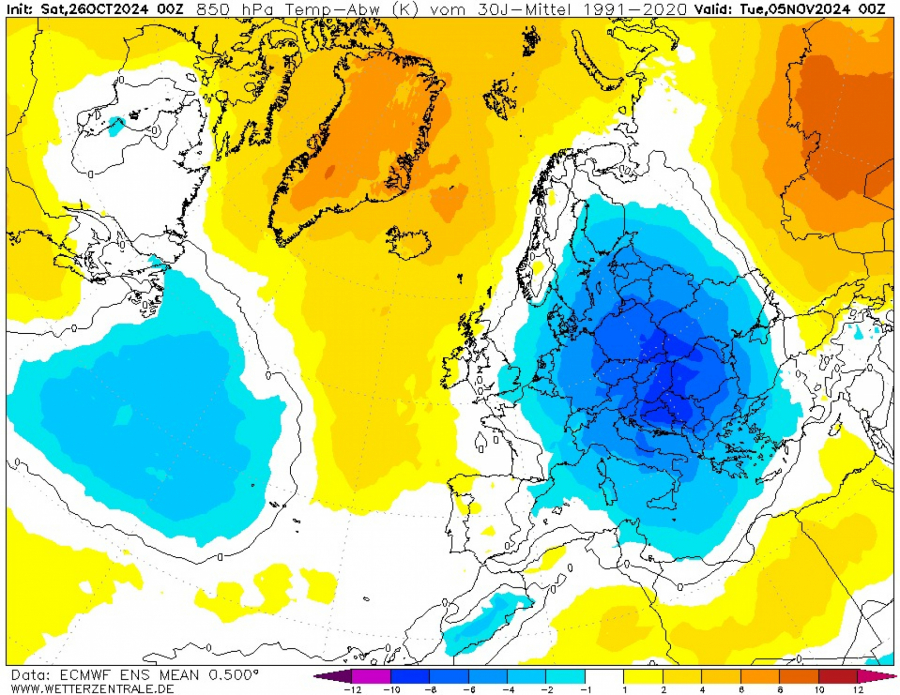 Na mapama ECMWF ENS modela se uočava baš veliki pad temperature od subote 2. novembra kao i da će centar ARTIČKOG vazduha to jest anomalije temperature biti iznad nas u utorak 5. novembra, zaključuje Ristić.