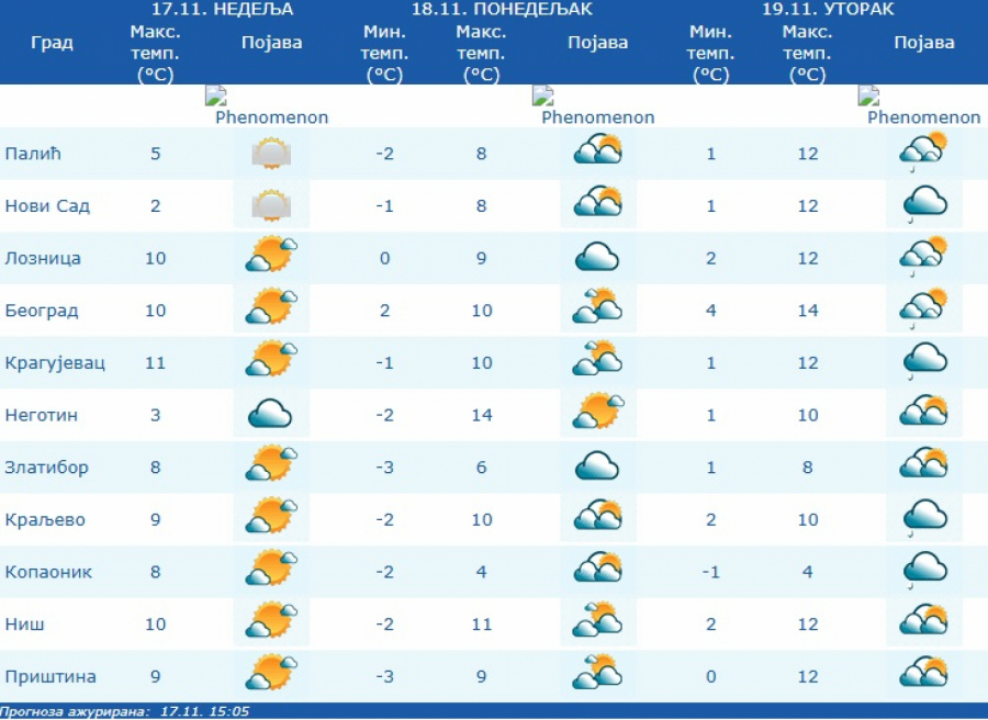 Očekuje se slab vetar, pre podne promenljiv, a posle podne jugoistocni, dok će se najniža temperatura kretati od -1 do dva stepena, a najviša dnevna biće oko deset stepeni.