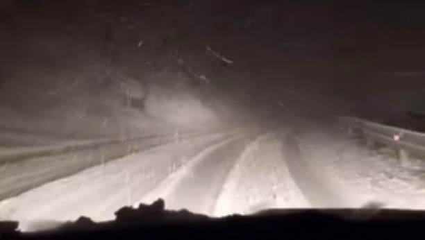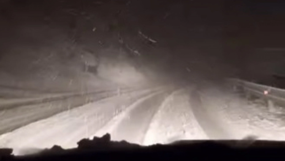 Velika količina snega večeras je prekrila područje Kaluđerskih Bara na Tari. Na snimku agencije "RINA" jasno je koliko su uslovi teški – vidljivost je smanjena do te mere da vozači jedva vide ispred sebe.