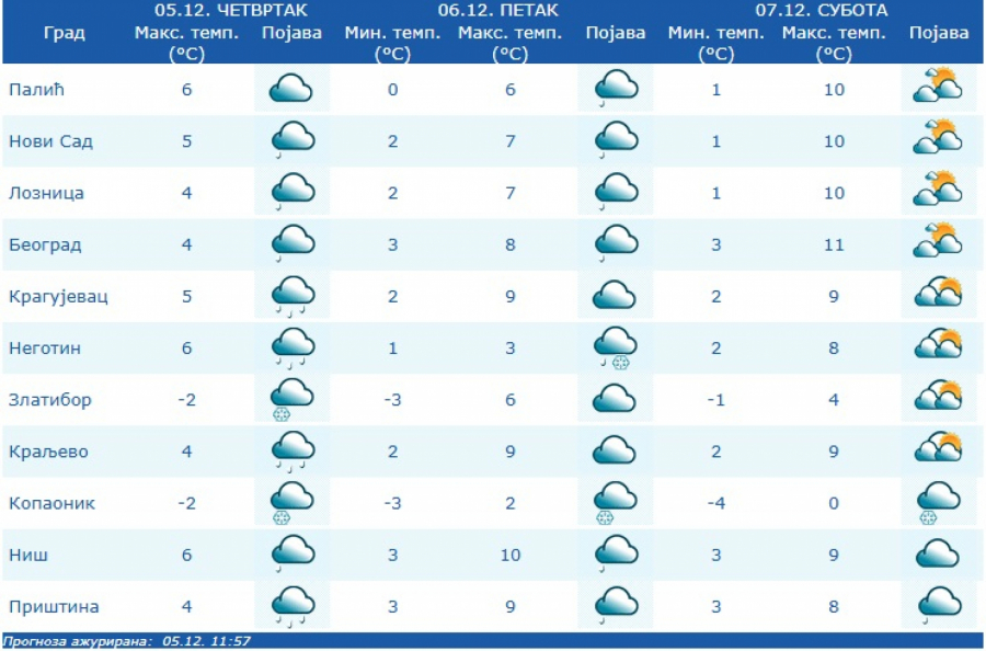 Duvaće slab i umeren vetar, u Banatu i donjem Podunavlju i jak, južni i jugoistočni, a temperature će se kretati od nula do tri stepena.