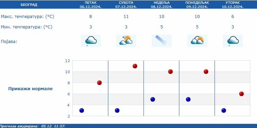 U Beogradu će biti pretežno oblačno i malo toplije, uveče s kišom, vetar uveče u skretanju na zapadni i jugozapadni, dok će najviša dnevna temperatura biti oko osam stepeni.