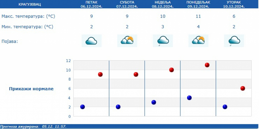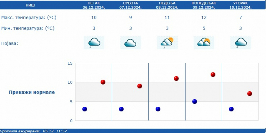 Sledece nedelje u Srbiji će biti pretežno oblačno vreme, mestimično s kratkotrajnom kišom, na planinama povremeno sa snegom, a od utorka će temperatura biti u manjem padu.