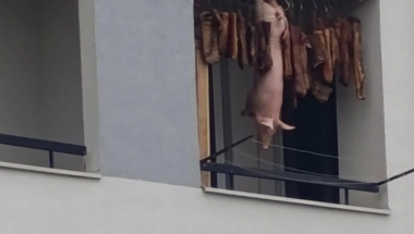 Naime, kako se može videti na Instagram stranici nsuzivo, neko se "snašao" u nedostatku prave "sušare" za meso, te je delikatese poput slanine ilisuvog mesa fino okačio na kanap za sušenje veša na terasi. I kao da to nije bilo dovoljno nadrealno, pridružio im je ni manje ni više nego celo prase, koje po veličini, reklo bi se, "nazime". To je, inače, u prevodu - poodraslo prasence.