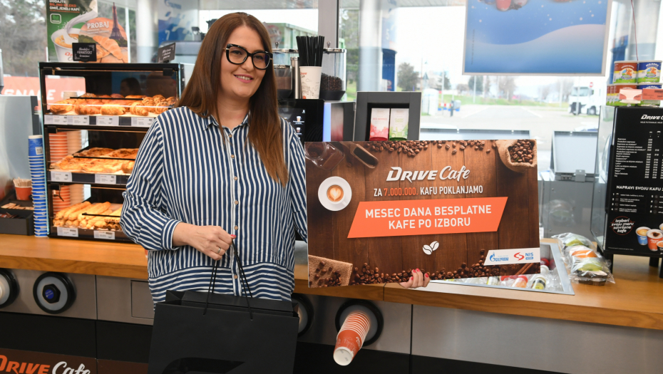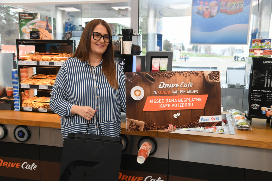 Kompanija NIS je ovim povodom nagradila srećnog dobitnika Drive Cafe vaučerom koji mu omogućava mesec dana besplatne kafe po izboru, kao i ekskluzivnim Drive Cafe setom proizvoda, a reč je o Sanji Ivanović iz Niša. Jubilarna sedmomilionita šoljica kafe prodata je na benzinskoj stanici „Fontana“, koja je i bila domaćin dodele nagrada srećnom kupcu. Pored modernog enterijera i vrhunske usluge, ova benzinska stanica ponosi se najsavremenijim kafematima koji omogućavaju pripremu kafe prema ukusu svakog posetioca. Za potpuni doživljaj, ovde je dostupna i bogata ponuda peciva, kroasana i osvežavajućih deserata – savršen spoj za uživanje uz šoljicu kafe nezaboravnog ukusa!